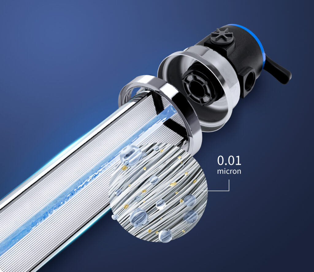- Sistem Filtrasi Ultra-Fine: Teknologi ini mampu menyaring lumpur, pasir, karat, hingga partikel mikro lainnya. Dengan demikian, air yang masuk ke dalam tandon atau bak mandi Anda menjadi jauh lebih bersih.