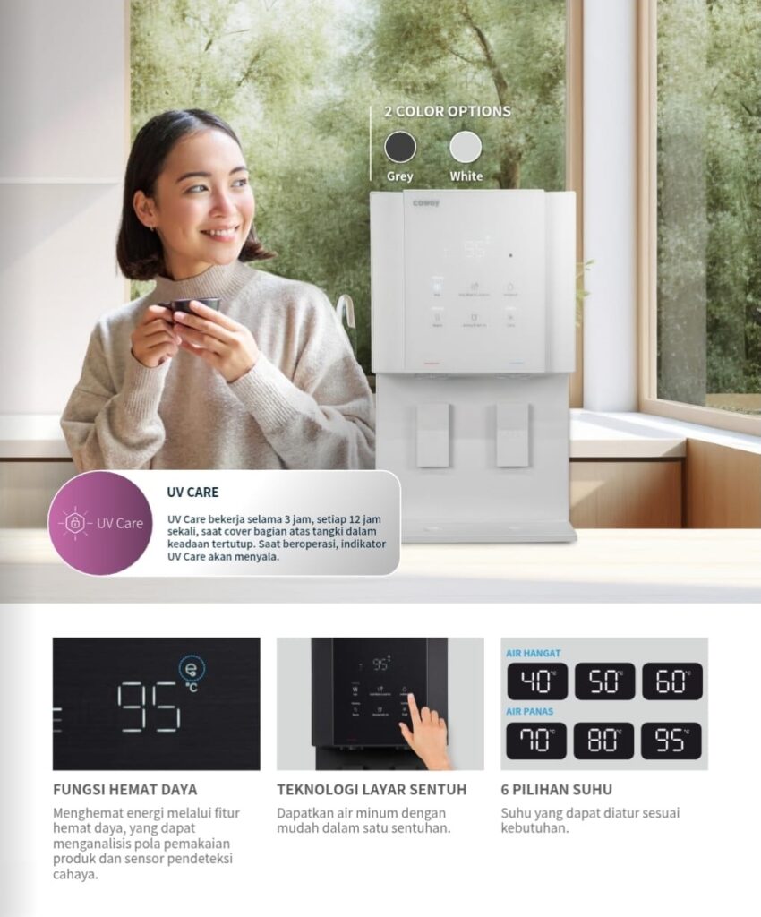 - Pilihan Temperatur Lebih Variatif: Anda dapat menikmati air panas, dingin, suhu ruangan, hingga air hangat dengan pengaturan suhu yang lebih presisi.